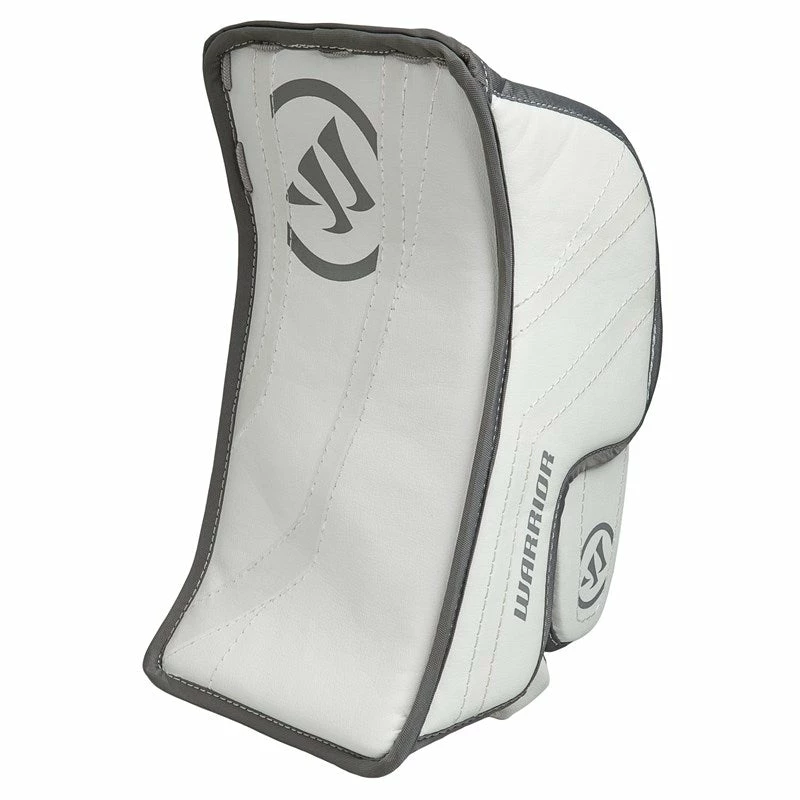 This blocker features a light weight design. The control grip palm always for further mobility, allowing maximum command of your goal stick. The easy flex finger protection also helps with mobility while also adding the necessary protection. To enhance rebound control, Warrior has added the double curve blocker board. The junior G2 blocker offers features to help the younger goaltenders find their own style.