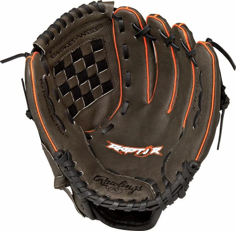 Raptor Series Glove that is Lightweight, Flexible and has Easy Closure. Good for Young players looking for a combination of flash and performance. All Leather lightweight shell and attractive accent Basket Web Neo Flex Back with New micro injection Velcro strap closure.