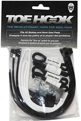 Most juniors will be able to attach their pads by themselves. Seniors will find less back and hip strain attaching their pads by using ToeHook. It fits nicely on most pads, using the holes vacated by those messy laces. The elastic extension can be secured to any make of goal or regular skate. ToeHook is made of 14-gauge stainless steel to resist bending. It is then coated with nylon to resist friction and wear during use. Heavy Duty elastic cord and tie wraps hold up to a goalie’s best saves. Butterfly goalies to standup goalies will find that the ToeHook stretches only when needed. Great feel and control are there for you, every time you wear the ToeHook.